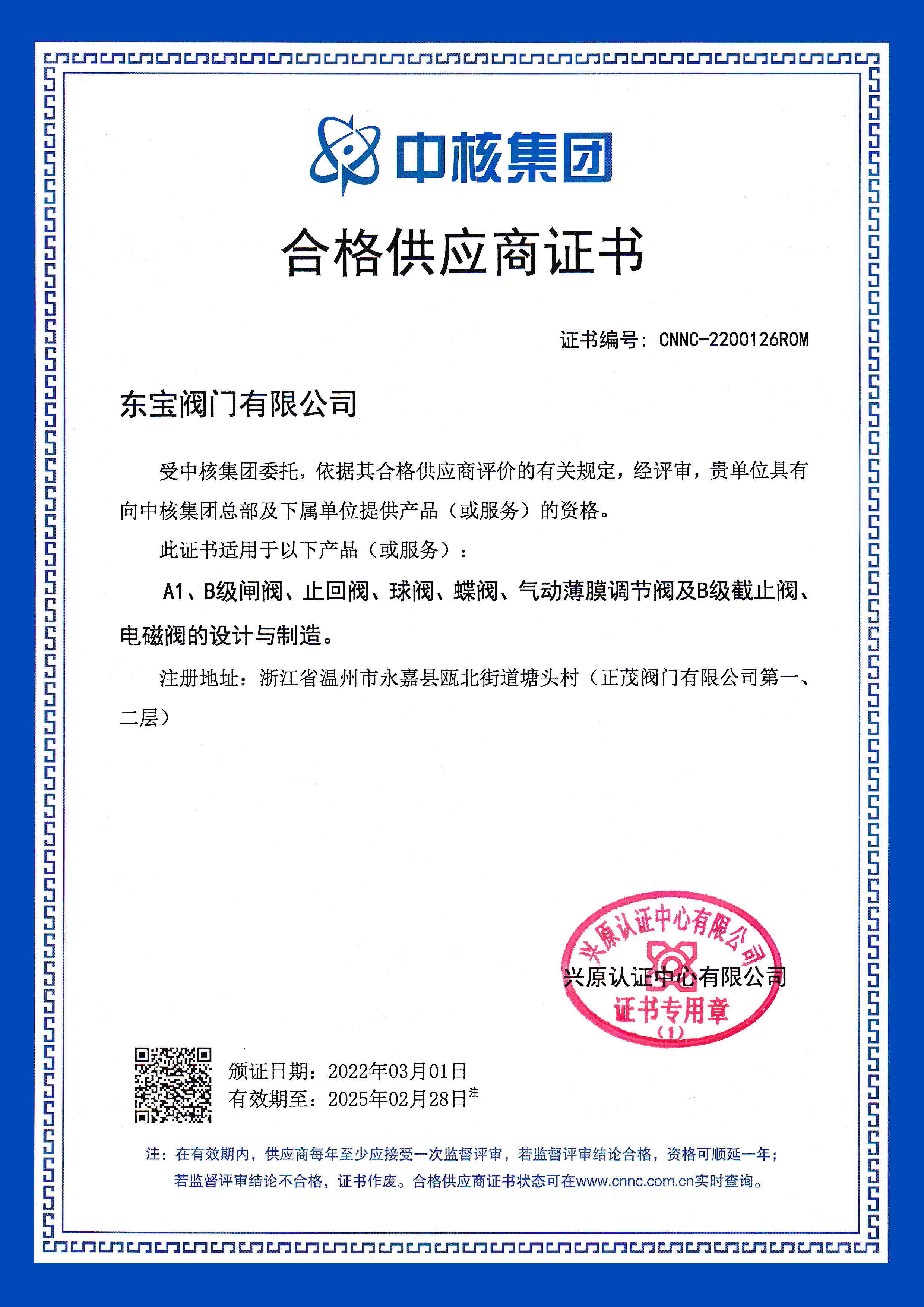 | 获评中核集团合格供应商,为东宝阀门后续在核电领域占据市场竞争主动权提供了坚强保障,同时有利于拓展东宝阀门在核电领域的发展,也为东宝阀门未来与中核集团加强交流、深化合作奠定了重要基础。