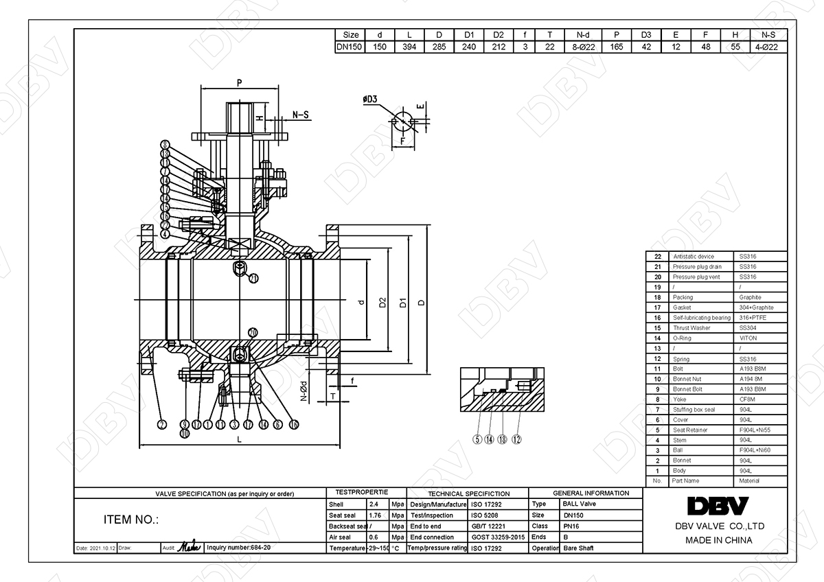 ![]() | 东宝固定球阀(DN≥150,NPS6)采用注脂设计,它有效地避免了阀座环意外损坏导致的泄漏。 | ||