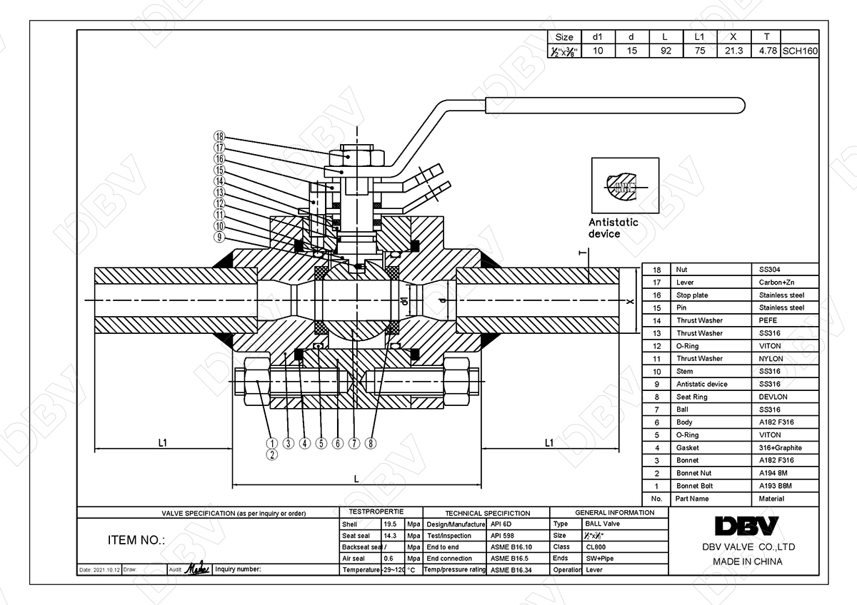 缩径(RB)浮动球阀,不锈钢阀体材料F316,端部螺纹接头110mm,防腐涂料,防腐性能优异