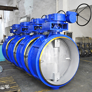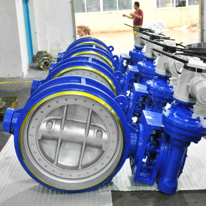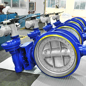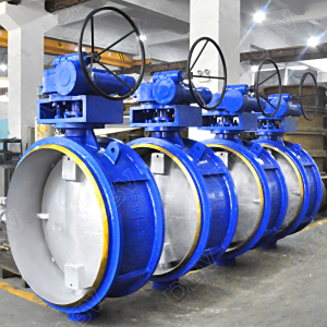 对焊三偏心蝶阀材质:阀体:WCB 阀瓣:CF8 阀座:叠层STL 密封圈:F304+STL 公称压力PN16 公称直径:DN700